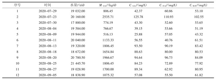 表1 湛江市某城區污水廠TP實測值